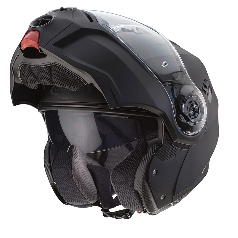 DROID è dotato dell’esclusivo sistema DoubleVisorTech che grazie ad una visiera parasole integrata facile da manovrare, permette di guidare sempre con la giusta luce e quindi con la massima sicurezza. La visiera parasole è resistente al graffio mentre quella esterna trasparente non solo al graffio ma anche all’appannamento grazie alla lente Pin Lock Max Vision.