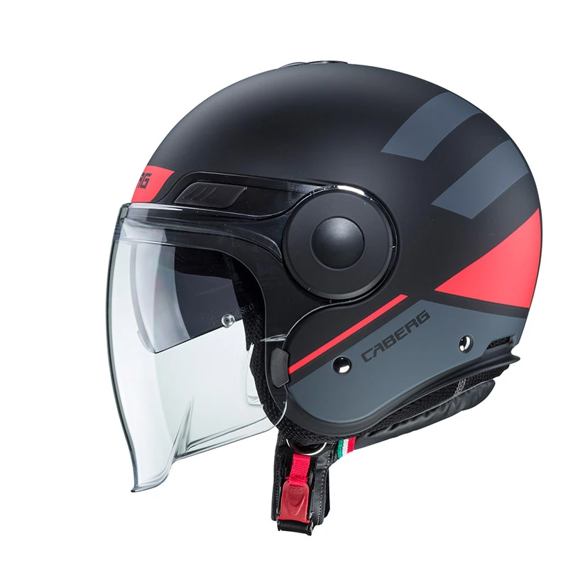 Uptown è il casco jet caberg dalle linee classiche ed eleganti dedicate al mondo touring, in grado di soddisfare anche le esigenze più pratiche che si incontrano nei percorsi urbani di tutti i giorni.